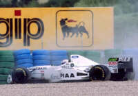 There have been numerous appearances in the top ten for Jos, and in fact Brazil had also seen him fifth in the warm-up. At Imola he made up four places at the start, and was into tenth before technical problems intervened. Silverstone saw an excellent qualifying run, and he briefly held pole with a late attack in drying conditions. Although he slipped to eighth at the end, this was close to his best ever, and it was four years since he was as far forward. In the race he hung on to Villeneuve and Michael Schumacher, until his car let him down again. In Spain he ran eighth, but the gearbox failed, and then the European Grand Prix was another excellent one. He was again fifth in the warm-up, and took advantage of the rain to move up to seventh during the race. This time he went out after Irvine tried to hold him back, and instead spun his Jaguar, damaging the Arrows slightly. It crashed in a big way soon afterwards.